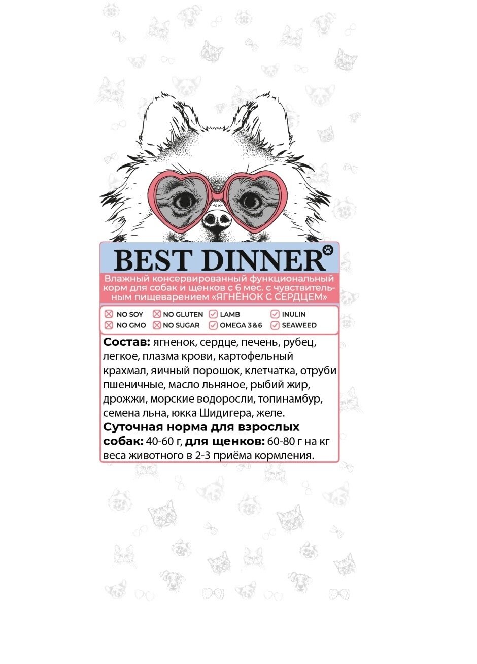 Влажный корм для собак Best Dinner Gastro для чувствительного пищеварения и пищевой непереносимости, ягненок/сердце 340г