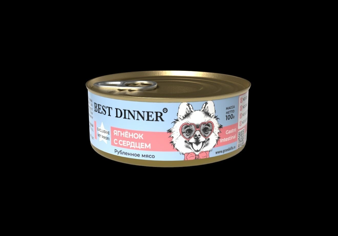 Консервы Best Dinner Vet Profi Exclusive Gastro Intestinal для собак и щенков всех пород. Ягнёнок с сердцем. (12шт по 100гр)