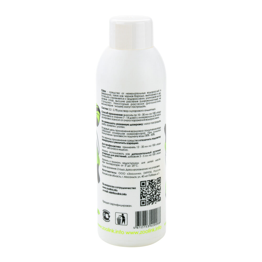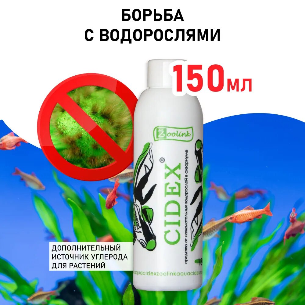 Zoolink Средство CIDEX для борьбы с водорослями в аквариуме, от "чёрной бороды", "въетнамки", 150 мл