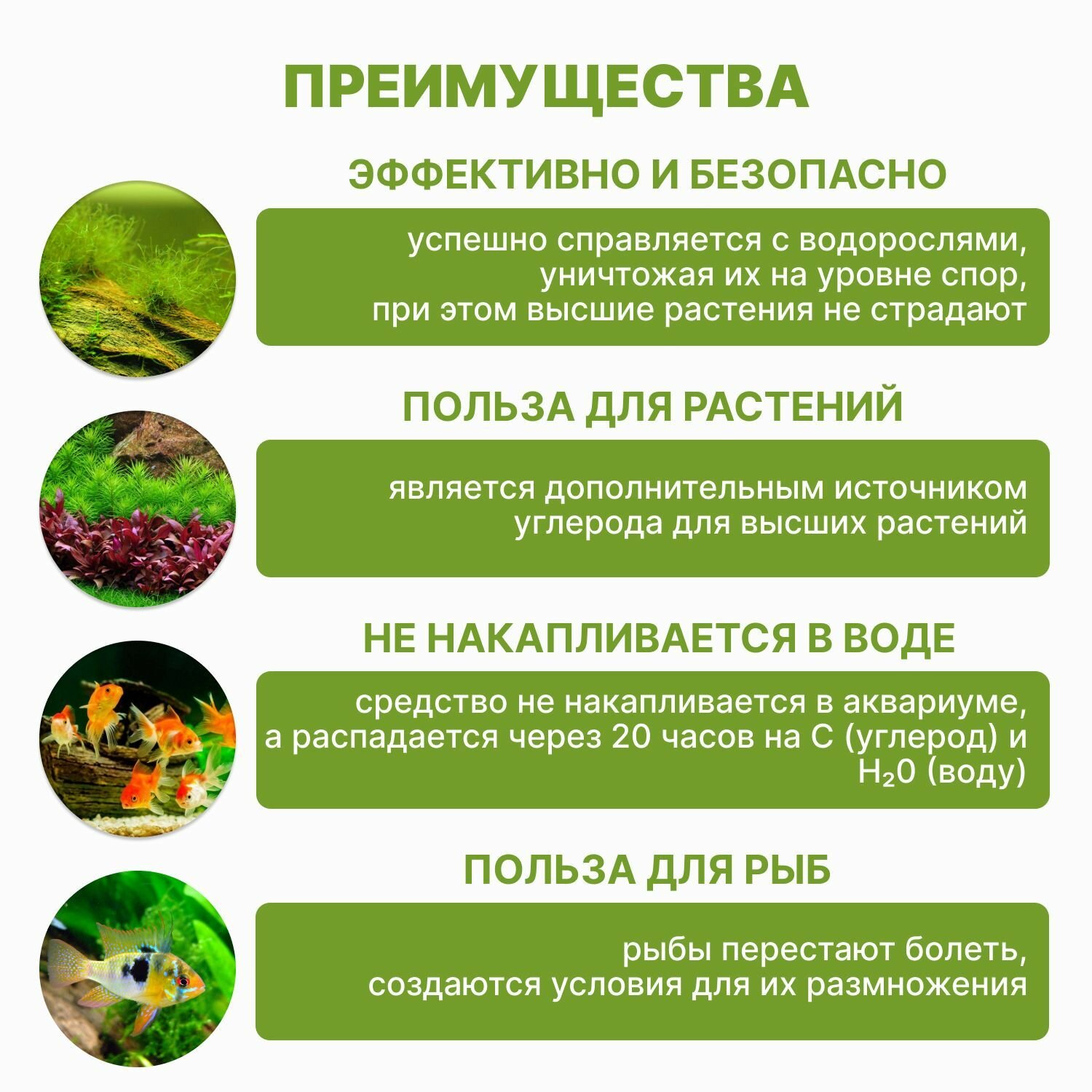 | Плюсы: | Деликатно борется с водорослями,не вредит рыбам |