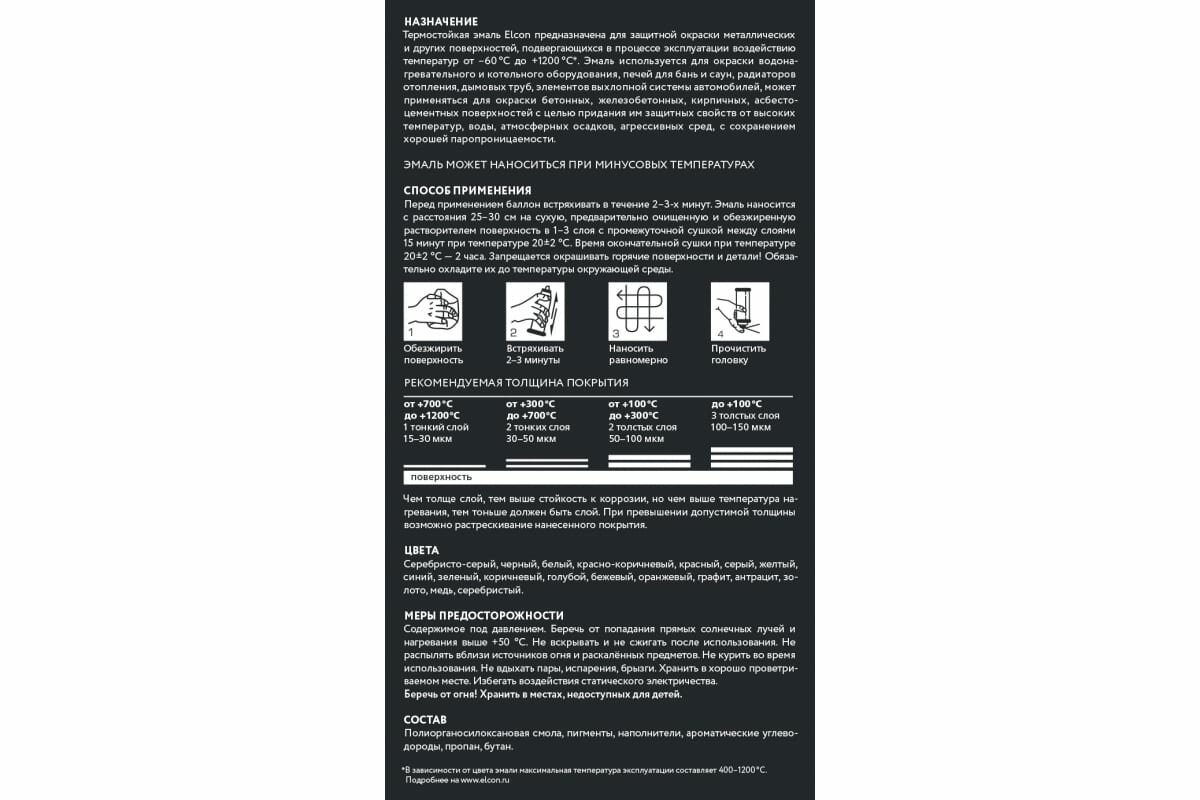 Elcon термостойкая эмаль черная 1000 градусов аэрозоль 520 мл 00-00002957 .