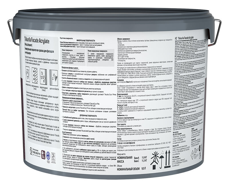 краска акрилатная фасадная TIKKURILA Facade Acrylate база С 9л бесцветная, арт.700012346