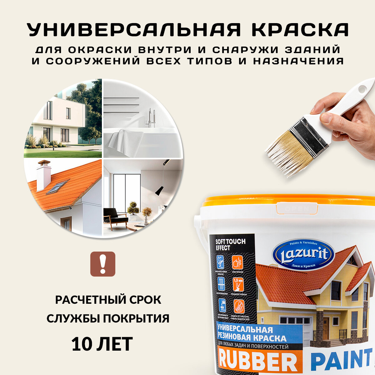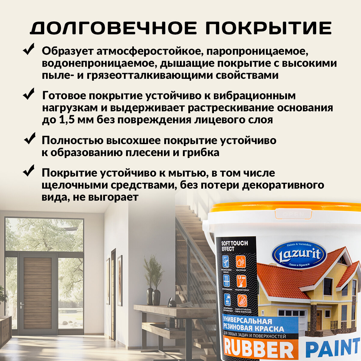Краска резиновая высокоэластичная трещиностойкая универсальная LAZURIT