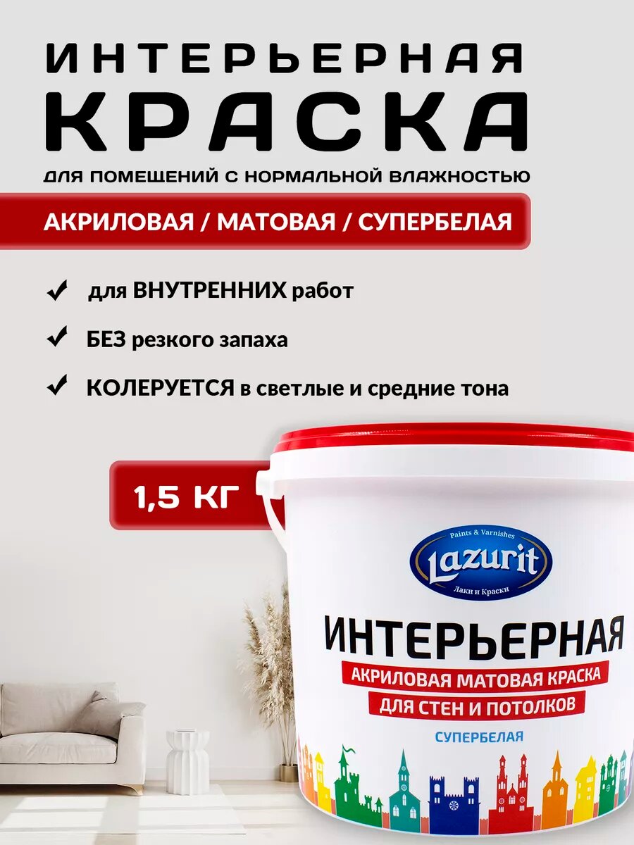 Купить LAZURIT Интерьерная краска для стен и потолков 1,5 кг