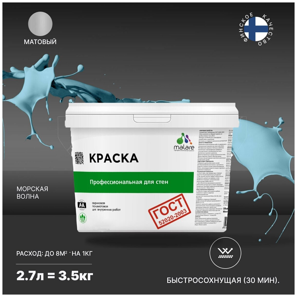 Купить Краска Malare "ГОСТ" интерьерная для стен и потолков в сухих помещениях, быстросохнущая, без запаха матовая, морская волна, (2.7л - 3.9кг)
