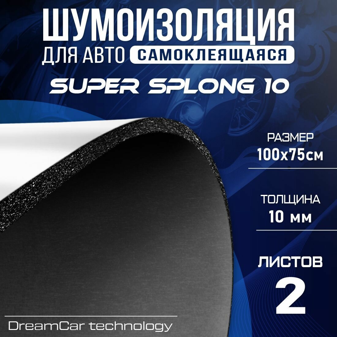 DreamCar Technology 2 листа - Звукоизоляция с повышенным звукопоглощением DreamCar Super Splong 10мм 1х0.75м - 2 листа интересное: