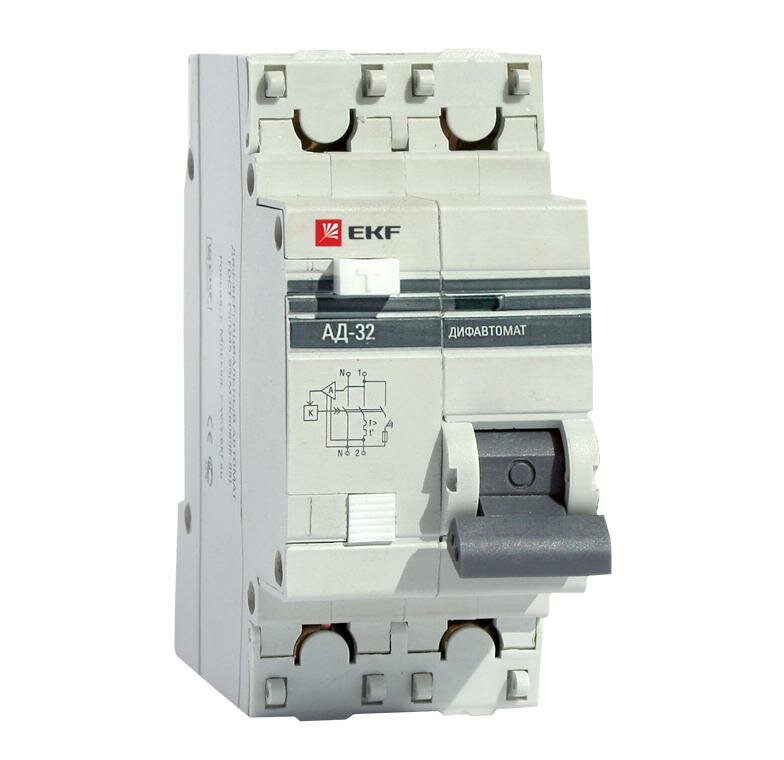Дифференциальный автоматический выключатель АД32 1 полюс+N, 32А, Тип AC, х-ка C, 100мА | код. DA32-32-100-pro | EKF ( 1шт. )