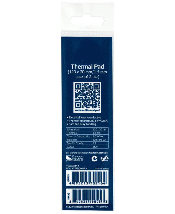 Купить Термопрокладка Arctic 120x20x1.5 mm 2шт Thermal pad 6.0 WMK ACTPD00014A