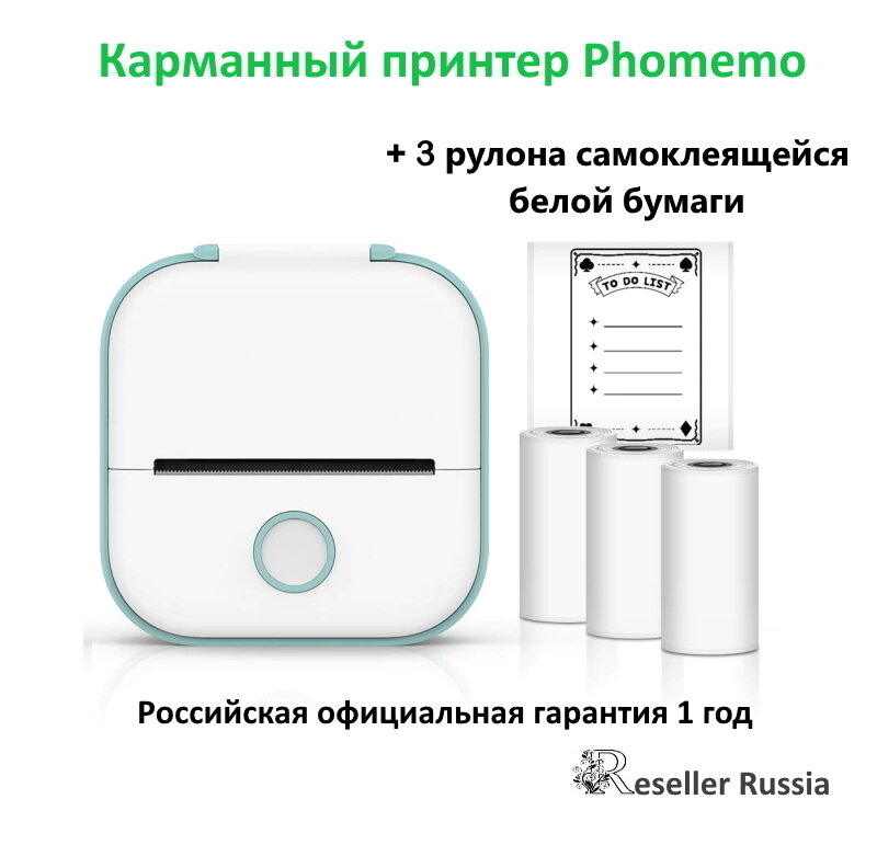 СохранитьМини принтер Phomemo T02 Green + 3 рулона самоклеящейся бумаги, карманный принтер для смартфона, зеленый интересное: