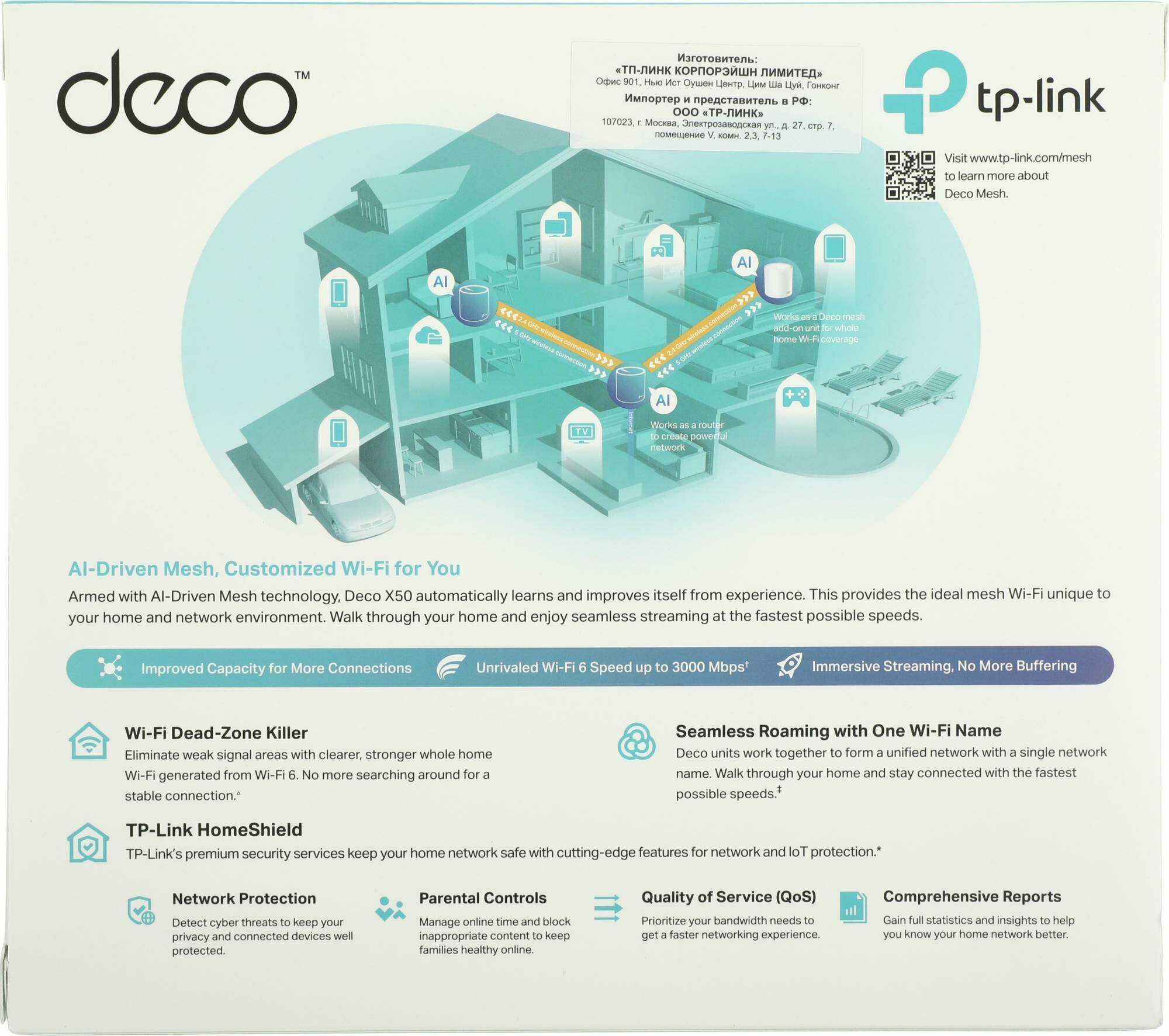 Бесшовный Mesh роутер TP-LINK Deco X50(1-Pack), AX3000 (DECO X50(1-PACK))