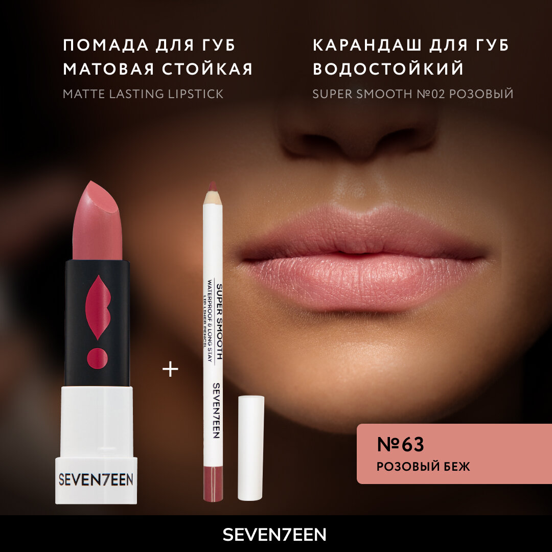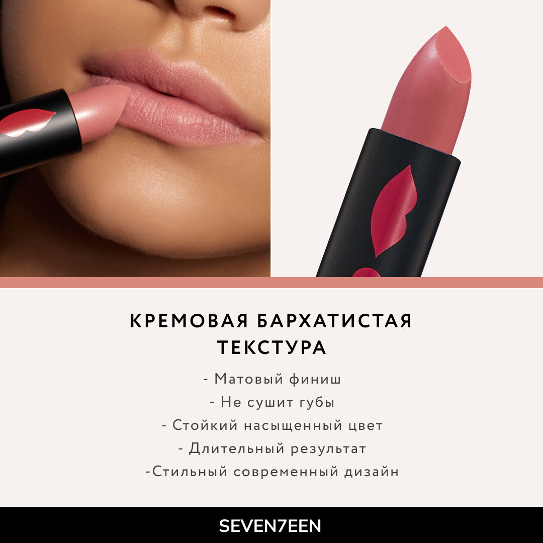Seventeen / Севентин Губная помада Matte Lasting Lipstick SPF 15 тон 02 розовый беж матовая, стойкая, увлажняющая, 5г / декоративная косметика
