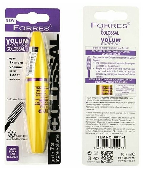 Ниже Вы можете прочитать отзывы на FARRES Тушь для ресниц Colossal Volume Express 6011-4, ознакомится с подробными характеристиками, посмотреть интересные обзоры и фотографии на FARRES Тушь для ресниц Colossal Volume Express 6011-4.
