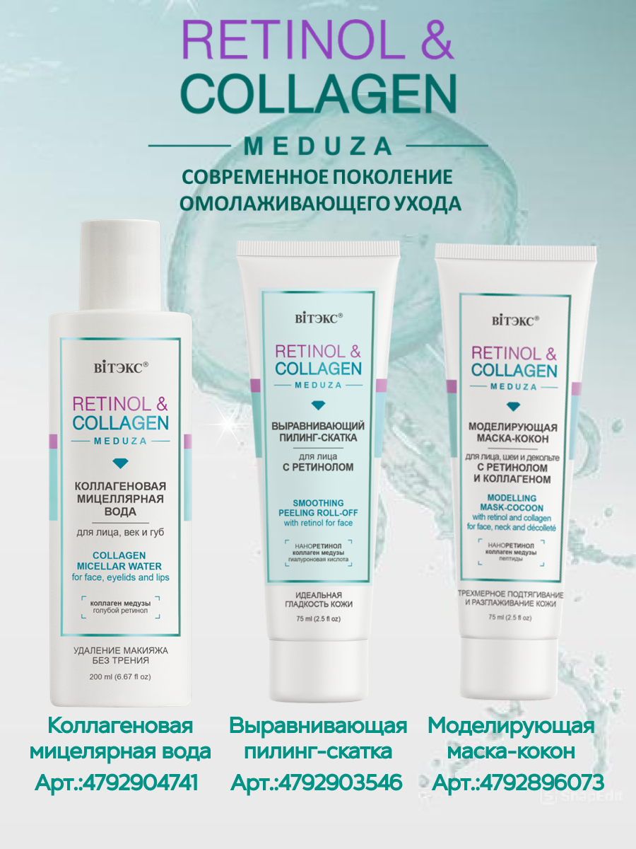 Витэкс Retinol & Collagen Meduza увлажняющий крем-коллаген для лица, шеи и кожи вокруг глаз, 45 мл, 125 г