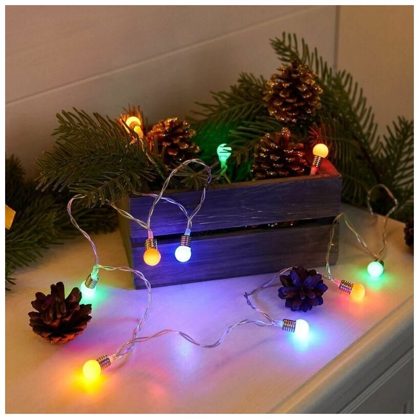 Гирлянда светодиодная Мини-лампочки 1.5 м, 10 Led, прозрачный Пвх, цвет свечения мультиколор, 2 х