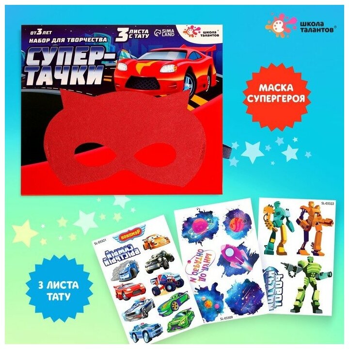 Купить Школа талантов Набор детских татуировок + маска супергероя "Супертачки"