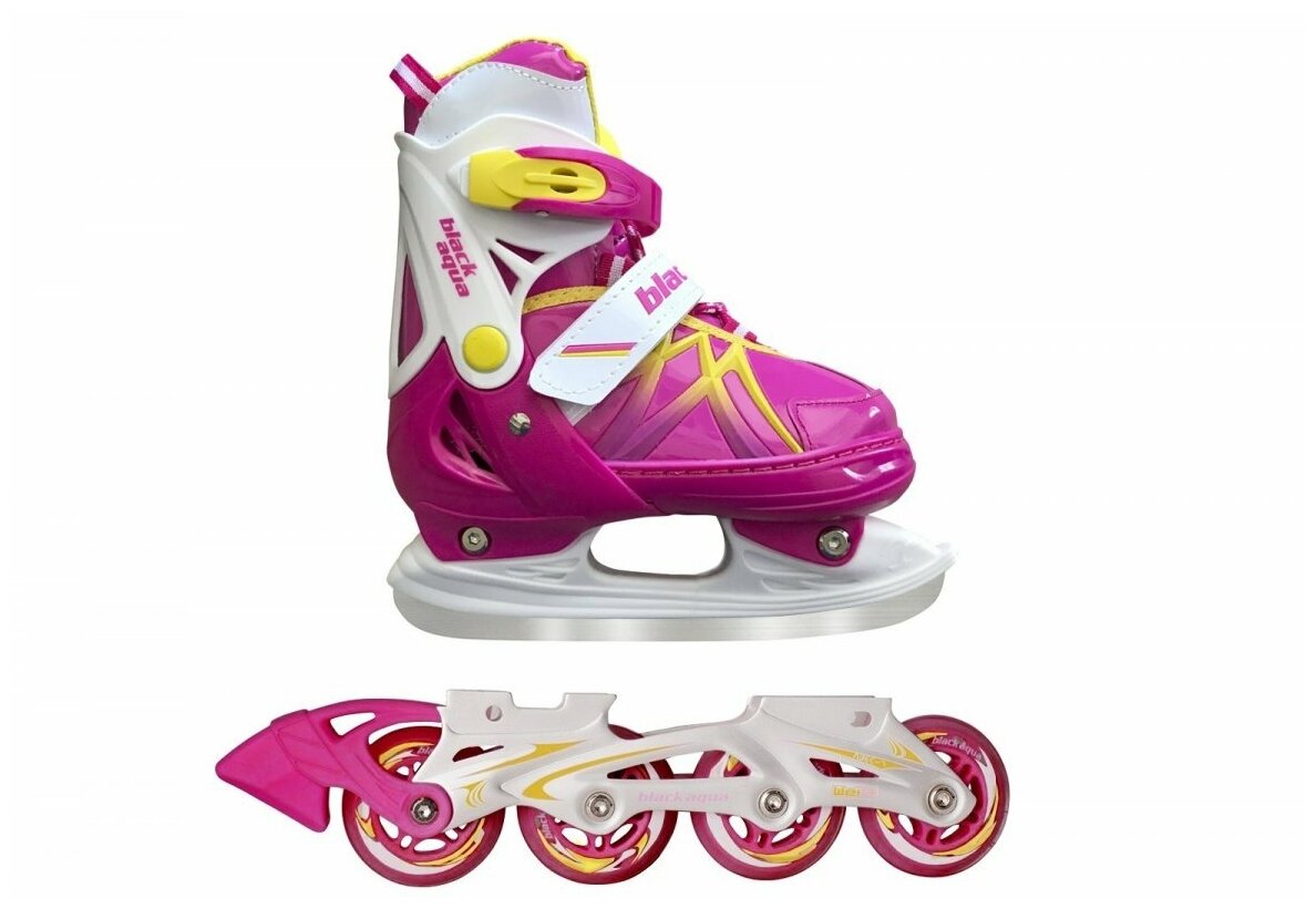Коньки + ролики/ Коньки детские ледовые раздвижные с роликовой платформой BlackAqua AS-410 фуксия размер 31-34
