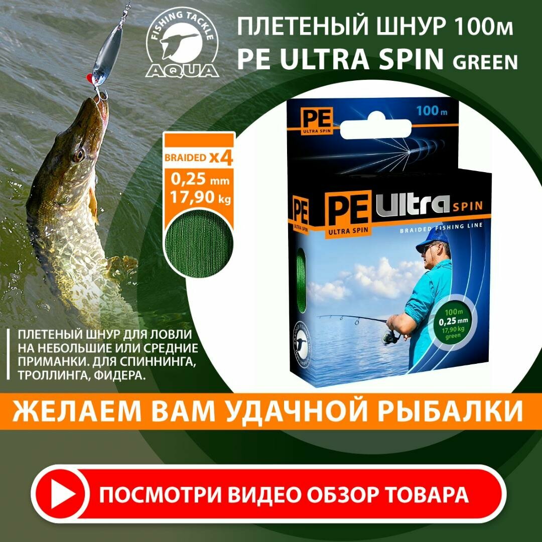 Ниже Вы можете прочитать отзывы на Плетеный шнур для рыбалки AQUA PE Ultra Spin Dark Green 100m 0.25mm 17.9kg, ознакомится с подробными характеристиками, посмотреть интересные обзоры и фотографии на Плетеный шнур для рыбалки AQUA PE Ultra Spin Dark Green 100m 0.25mm 17.9kg.