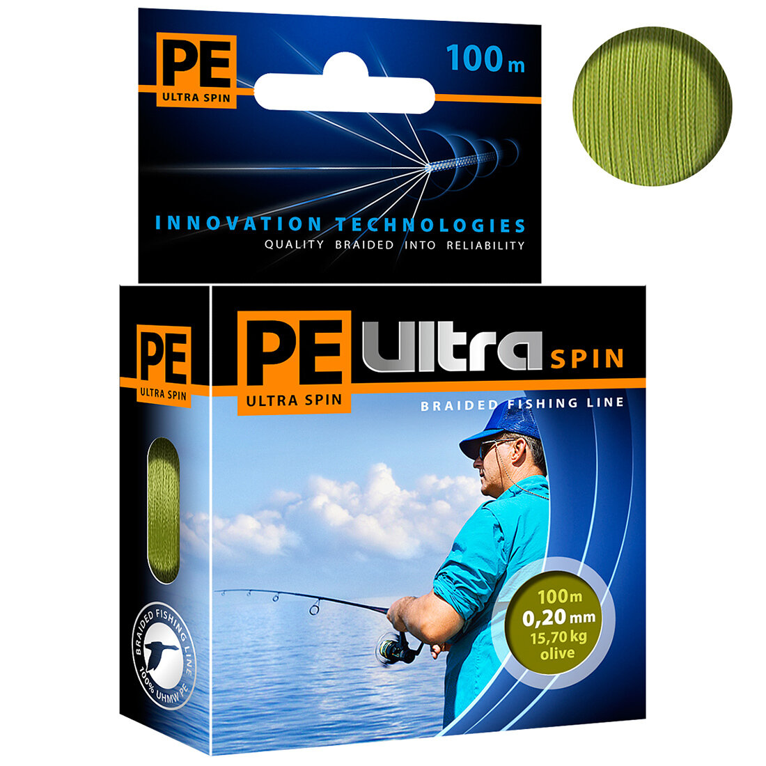 Плетеный шнур для рыбалки AQUA PE ULTRA SPIN Olive 0,20mm 100m, цвет - оливковый, test - 15,70kg