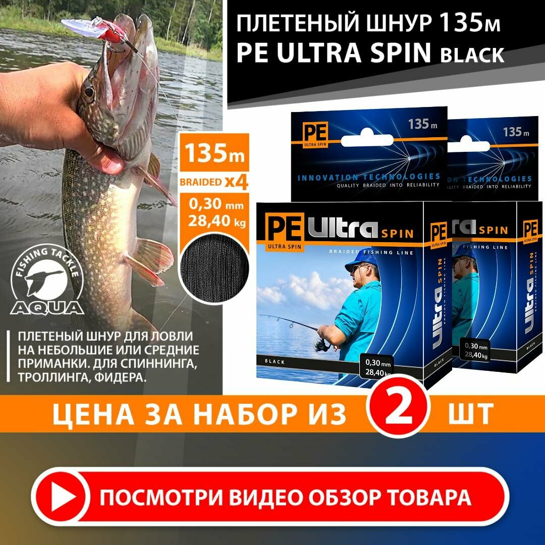 Плетеный шнур для рыбалки AQUA PE ULTRA SPIN Black 0,30mm 135m, цвет - черный, test - 28,40kg (набор 2 шт)