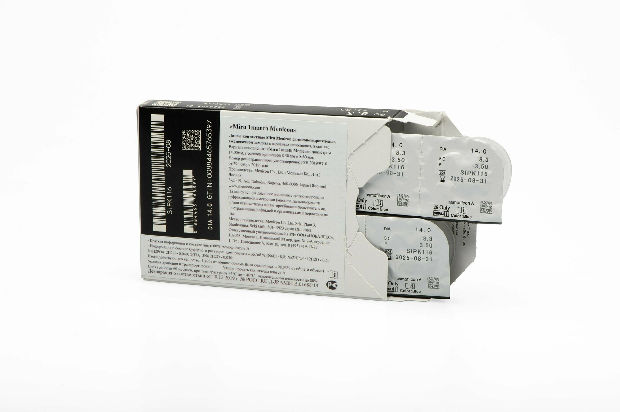 Контактные линзы мягкие Miru 1 month Menicon -3,50/8,3/6 шт. на месяц