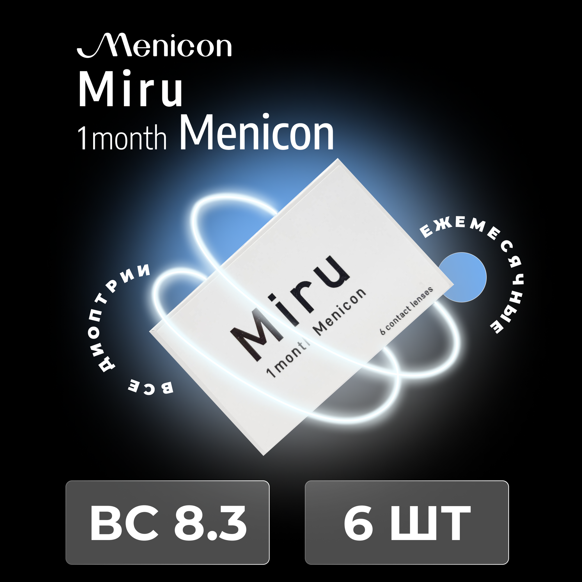 Контактные линзы на месяц Miru 1 month, 8.3, 6 шт. -8.50
