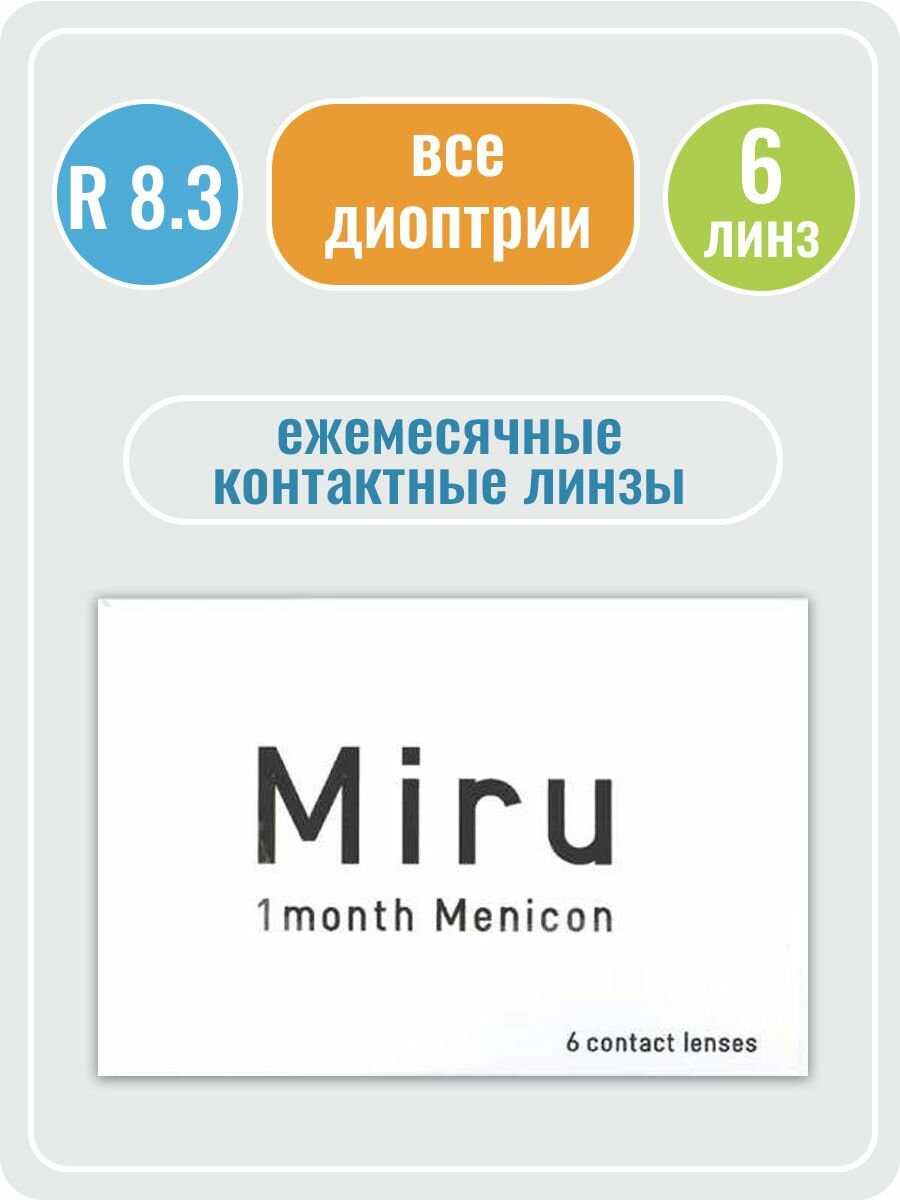 Контактные линзы на месяц Miru 1 month, 8.3, 6 шт. -8.50