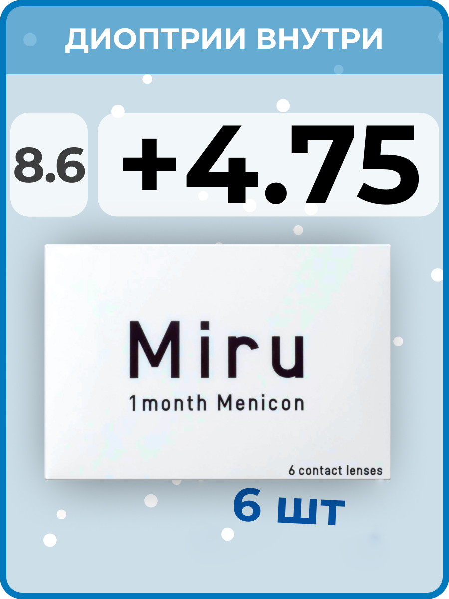 Контактные линзы на месяц Miru 1 month, 8.6, 6 шт. -4.75