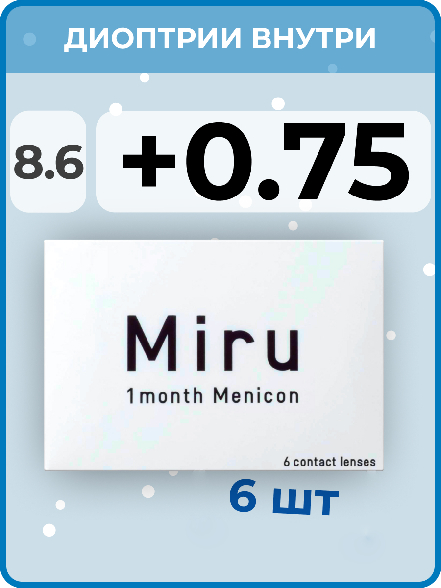 Контактные линзы на месяц Miru 1 month, 8.6, 6 шт. -0.75