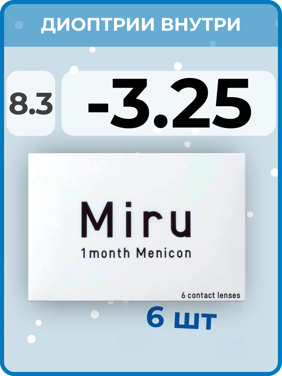 Контактные линзы на месяц Miru 1 month, 8.3, 6 шт. -3.25