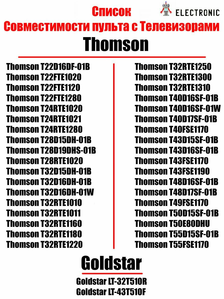 Пульт Huayu для телевизора THOMSON RC200 TimeShift