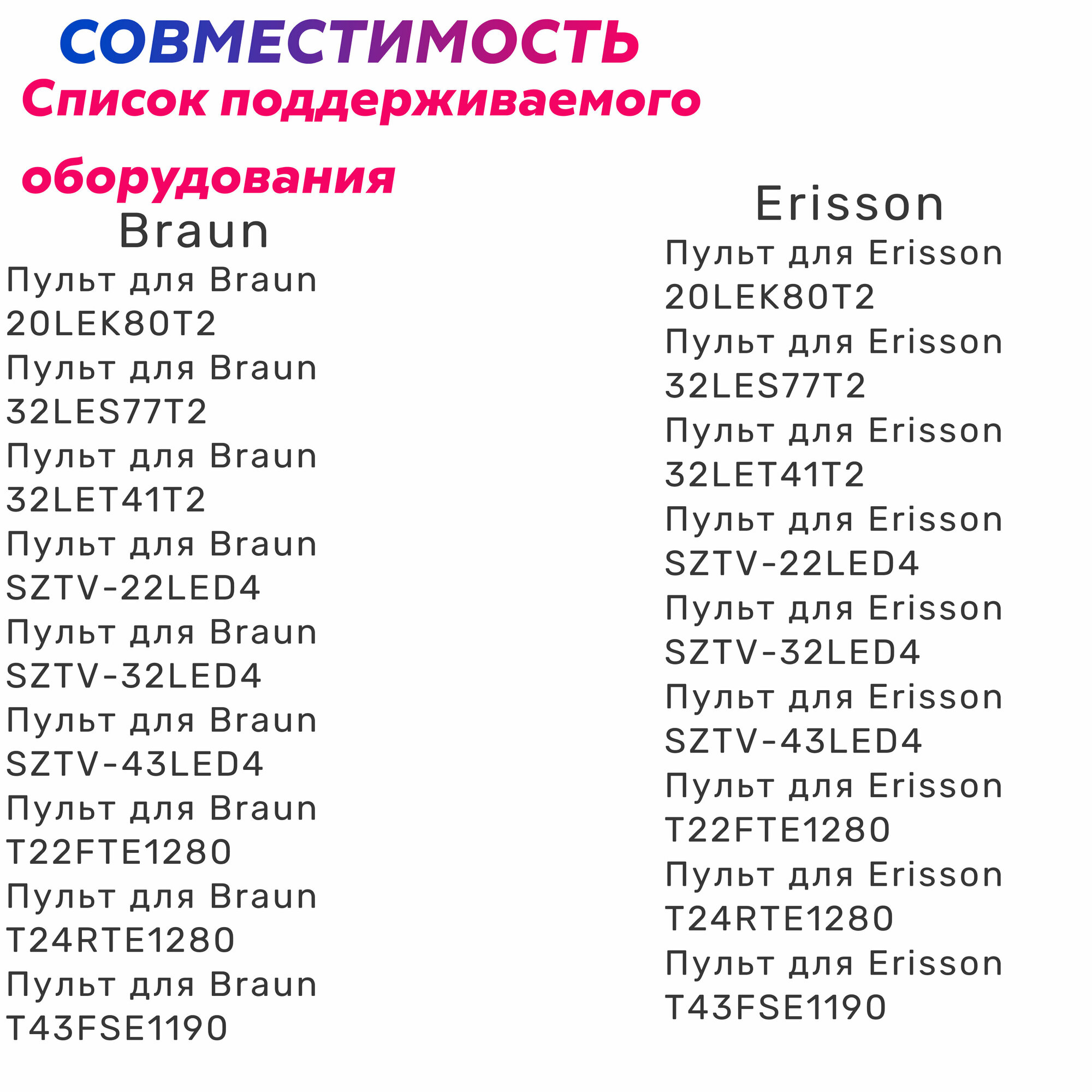 | Тип пульта | модельный |