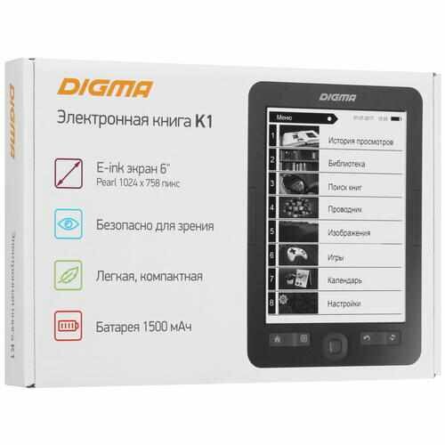 Ниже Вы можете прочитать отзывы на Электронная книга Digma K1 6" E-Ink HD, темно-серый, ознакомится с подробными характеристиками, посмотреть интересные обзоры и фотографии на Электронная книга Digma K1 6" E-Ink HD, темно-серый.