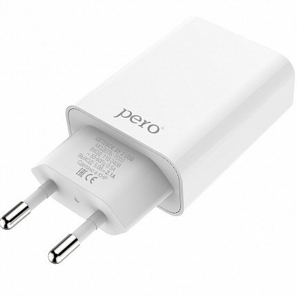 Сетевое зарядное устройство PERO TC02 2xUSB, 2.1A, белый