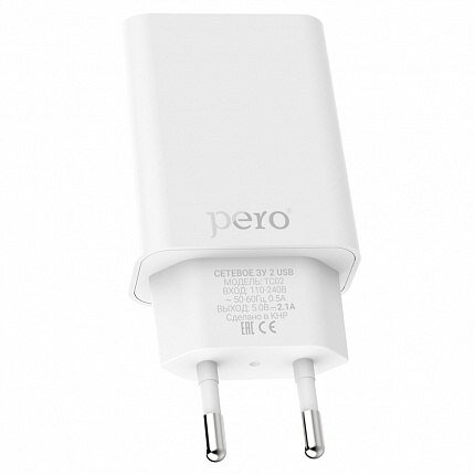 Купить Зарядное устройство сетевое PERO TC02 2USB 2.1A белый
