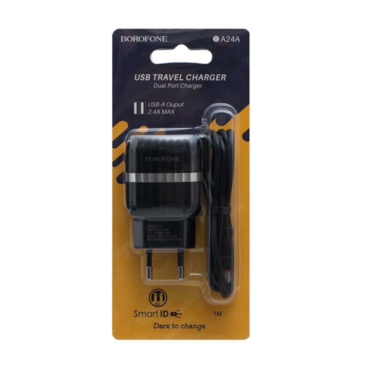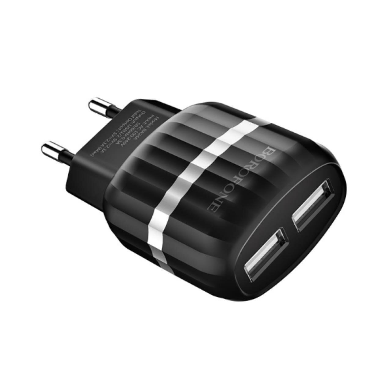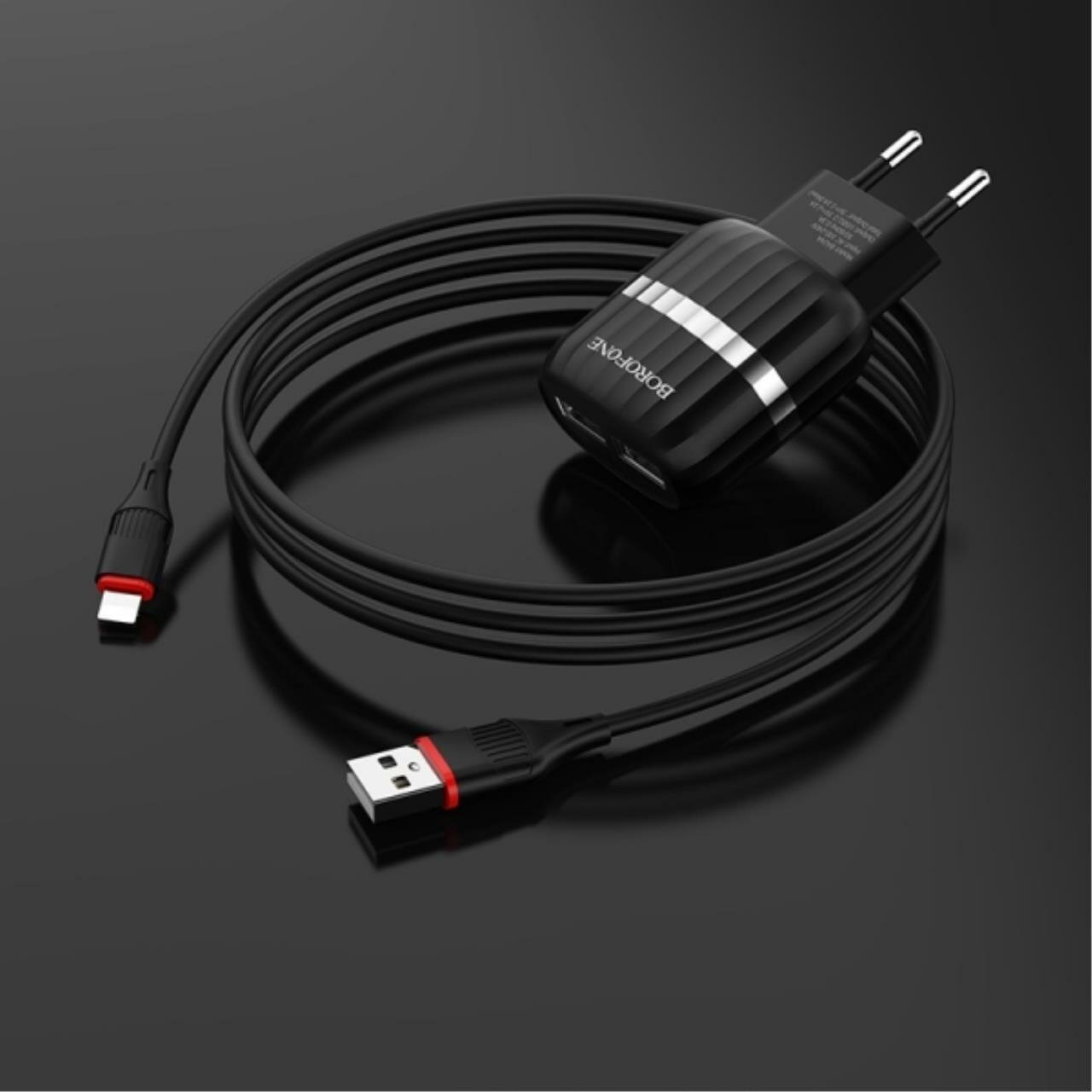 Купить Сетевое зарядное устройство 2USB + кабель Lightning BOROFONE BA24A Vigor 2400mAh (черный)