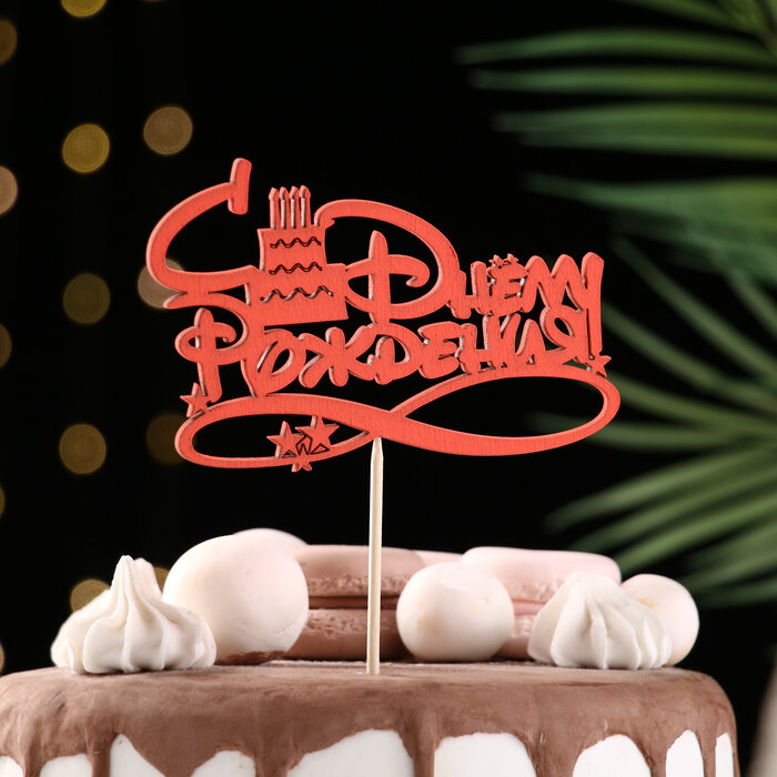 Топпер Ассорти "С Днём Рождения", 1 шт., в фасовке 7 разных топперов Дарим Красиво(7 шт.)