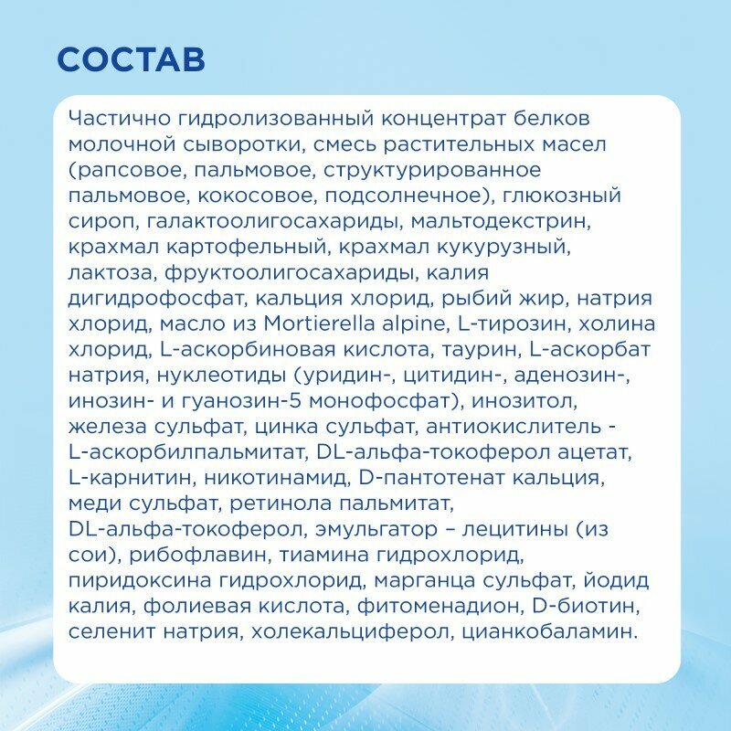 | Плюсы: | Ребёнок с рождения ест только эту смесь. Не знаем проблем с животом, аллергиями, собираемся скоро переходить на двойку. |