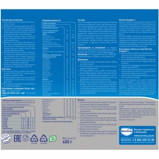 Смесь Nutrilon (Nutricia) 1 Комфорт, c рождения, 400 г