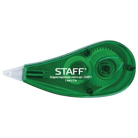 Корректирующая лента STAFF, 5 мм х 5 м, корпус зеленый, блистер, 226811