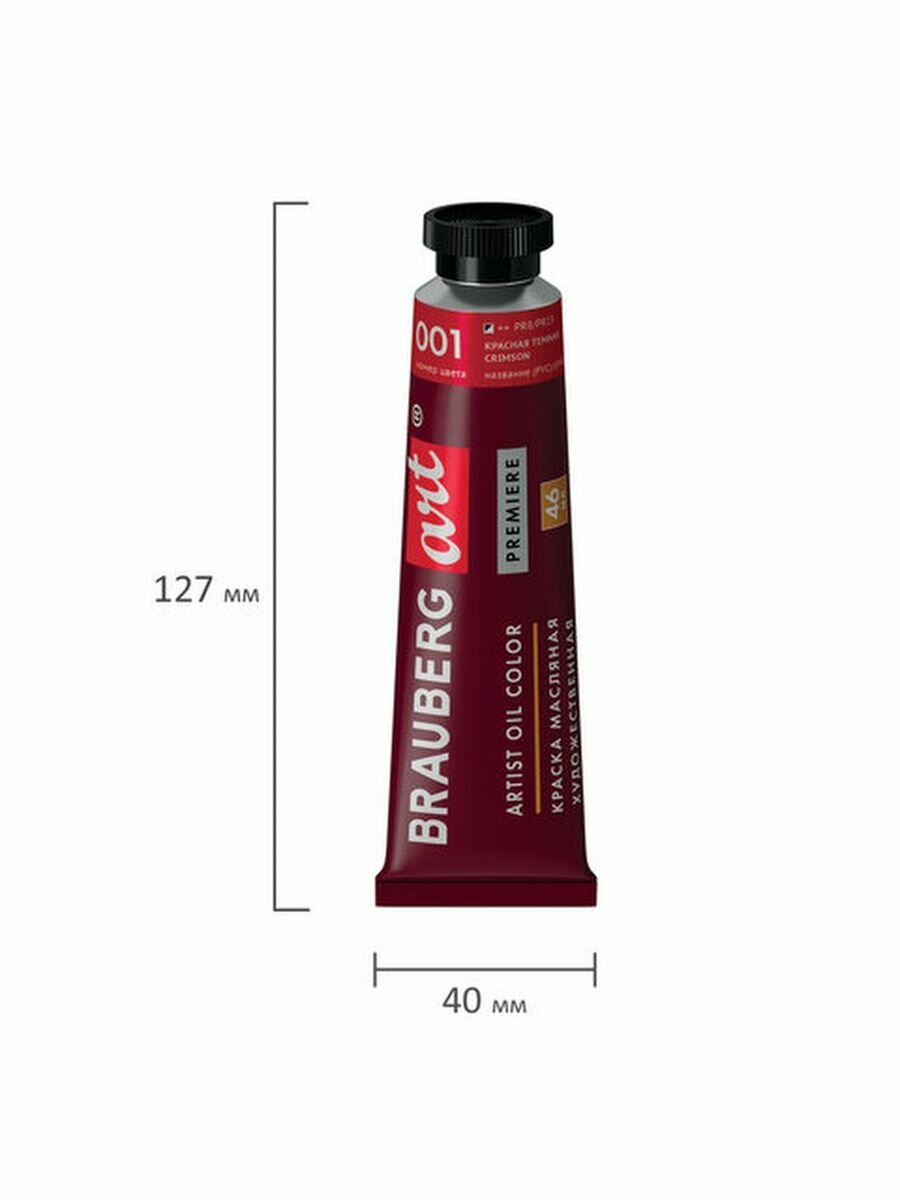Краска масляная художественная BRAUBERG ART PREMIERE, 46 мл, проф. серия, красная темная, 191410