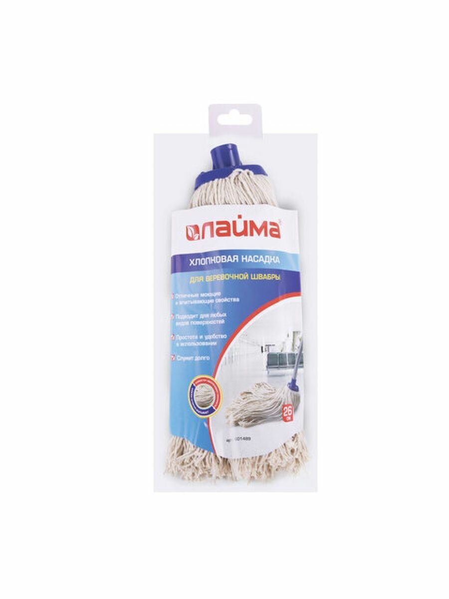 Насадка для швабры Лайма МОП, веревочная, длина ворса 26 см,165 г, хлопок, швабра 601470, для дома и офиса (601489)