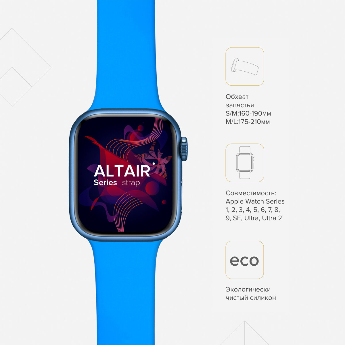Lyambda Силиконовый ремешок Altair для Apple Watch 42/44/45 mm, blue