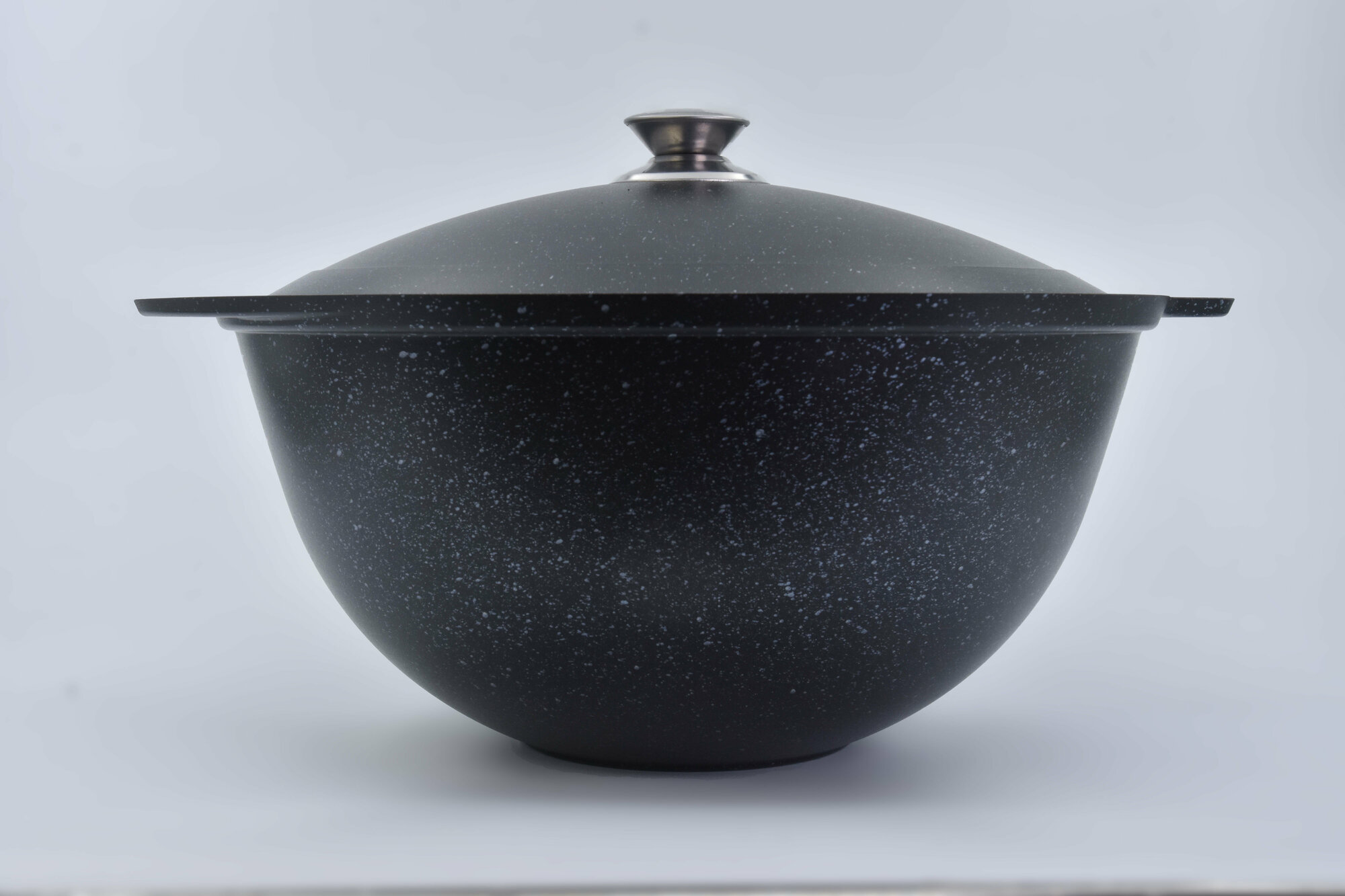 Казан c антипригарным покрытием литой 6,0л для плова с алюминиевой крышкой Темный мрамор ТМ KUKMARA