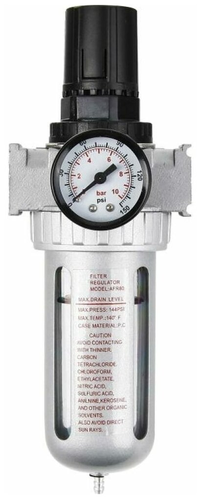 Ниже Вы можете прочитать отзывы на Pegas pneumatic Фильтр-влагоотделитель AFR804 1/2" с регулятором давления металлическая колба 4507, ознакомится с подробными характеристиками, посмотреть интересные обзоры и фотографии на Pegas pneumatic Фильтр-влагоотделитель AFR804 1/2" с регулятором давления металлическая колба 4507.