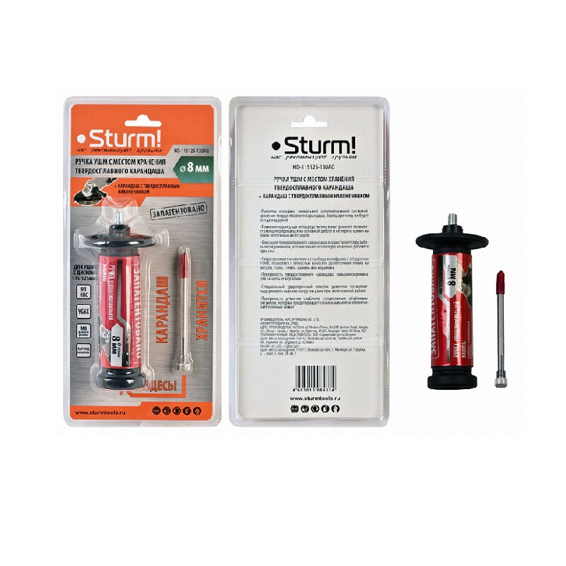 Ручка УШМ Sturm! HD-115125-130AG с местом хранения твердоспл.карандаша+карандаш, 8мм /77858/