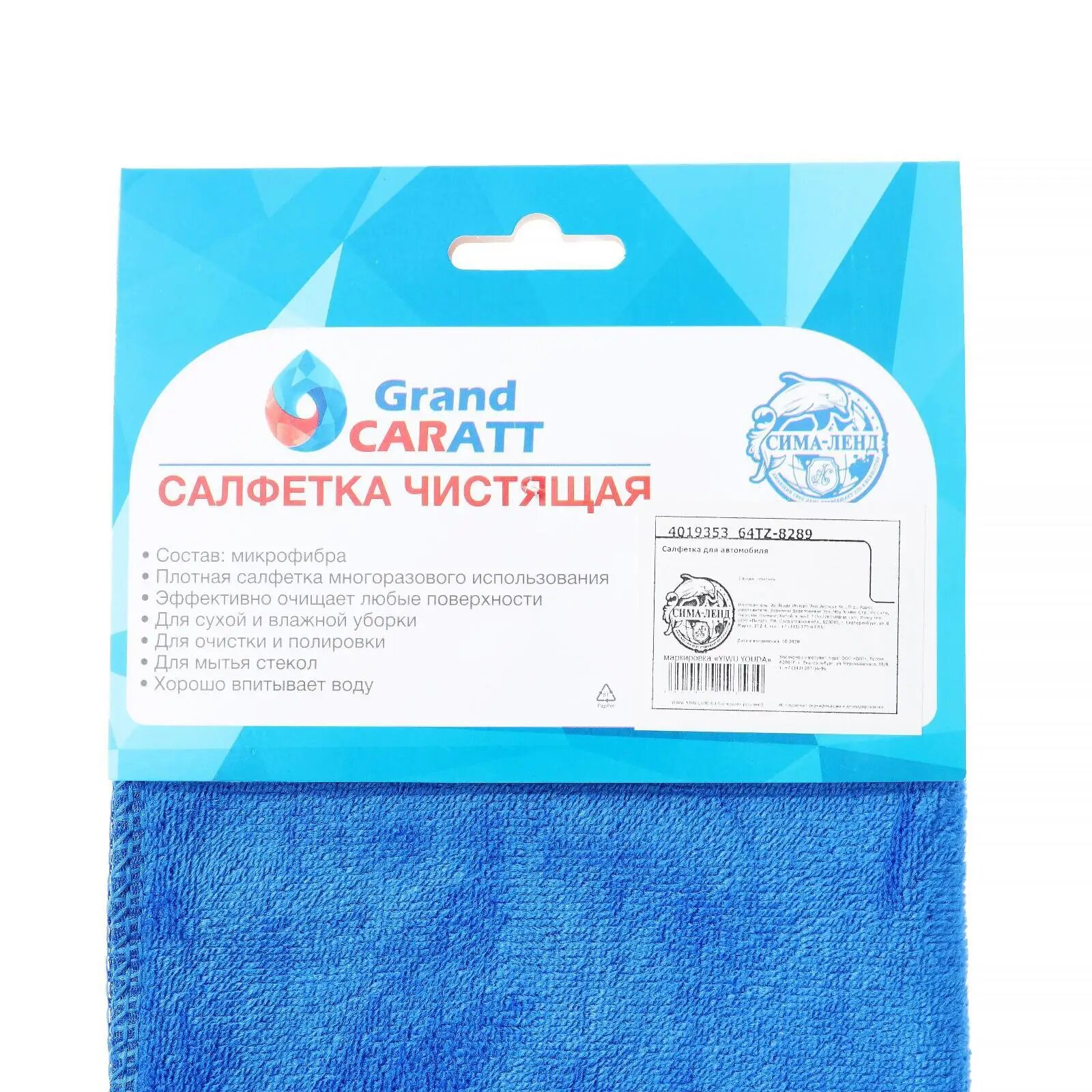 Салфетка для автомобиля Grand Caratt, микрофибра, 350 г/м?, 40?60 см, синяя Grand Caratt 4019353 .
