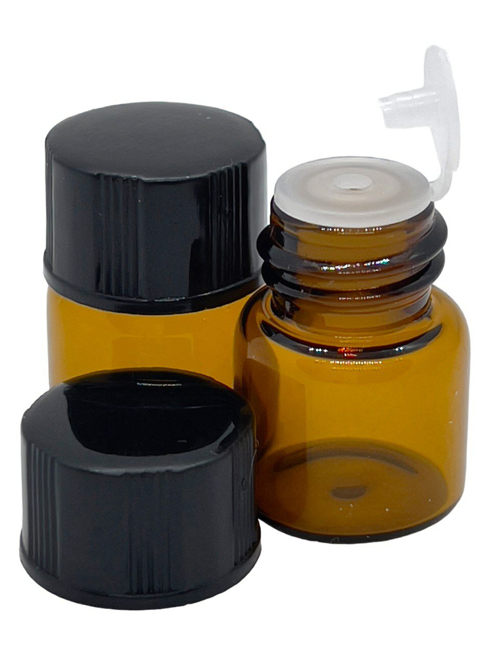 Купить Флакон пробник 1 мл для эфирных масел. Набор 50 штук. Стеклянный, черная крышка