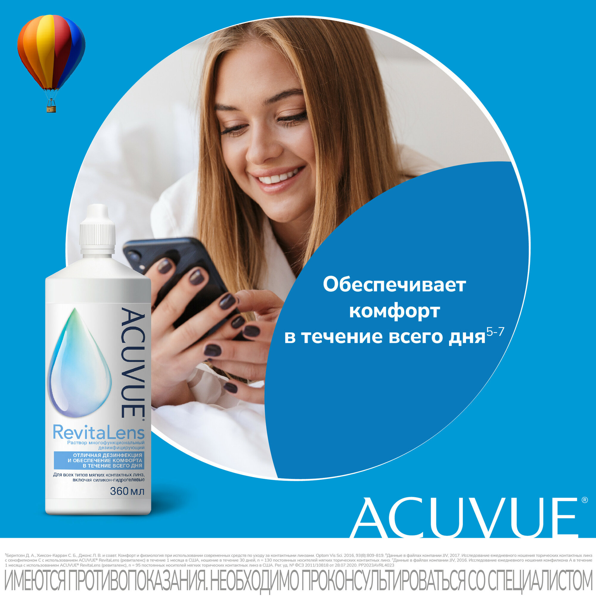 Многофункциональный раствор для мягких контактных линз Acuvue RevitaLens (с контейнером) 360 ml