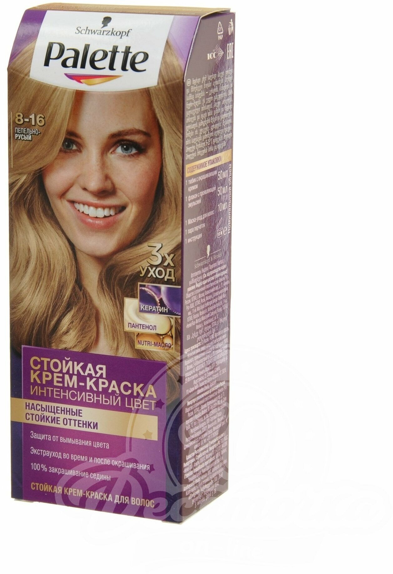 Palette Стойкая крем-краска для волос, (8-16) Пепельно-русый, защита от вымывания цвета, 110 мл