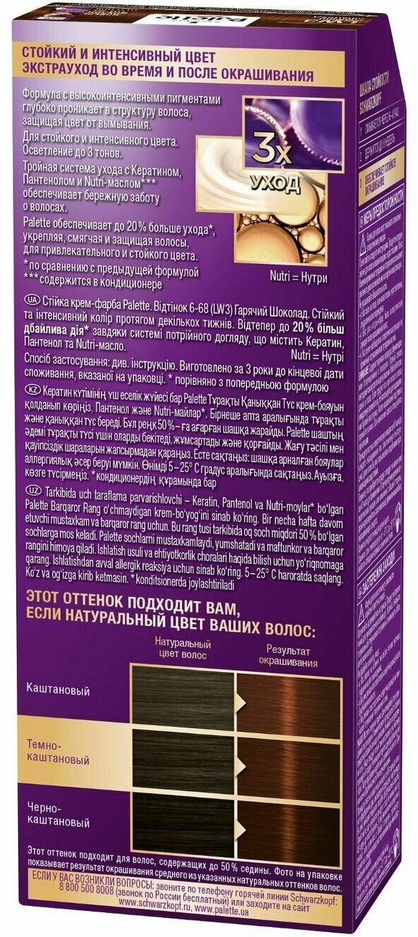 Палетт Стойкая крем-краска Интенсивный цвет, LW3 6-68 горячий шоколад, 110 мл - 3 шт
